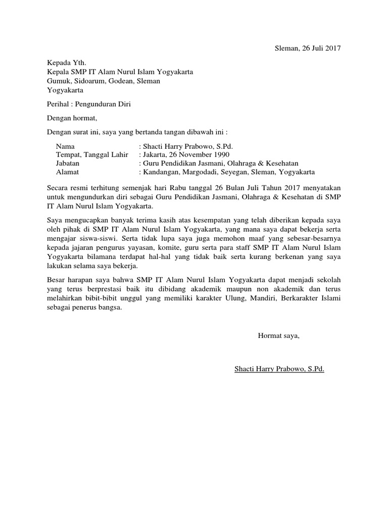 Kadang walau kita sudah memantapkan pilihan untuk resign atau mengundurkan diri. Fungsinya adalah untuk melegalkan status tanggung jawab di perusahaan dan persyaratan administratif. Oleh sebab itu, lebih baik rujuk contoh surat resign dalam bahasa inggeris, buat sedikit modifikasi dan terus hantar pada boss. Savesave contoh surat resign.docx for later. Surat pengunduran diri adalah surat yang dibuat oleh seseorang dan ditujukan kepada pimpinan perusahaan tempatnya bekerja dengan maksud untuk memberikan pernyataan bahwa si pembuat telah memutuskan contoh surat pengunduran diri sederhana.